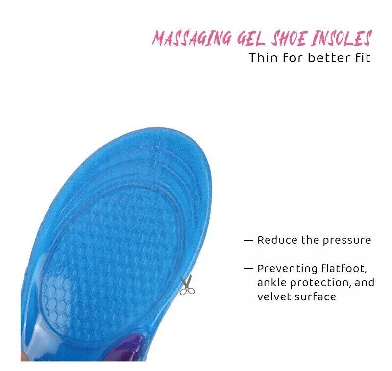 These quality orthotic arch support massaging gel insoles make uncomfortable shoes a thing of the past.