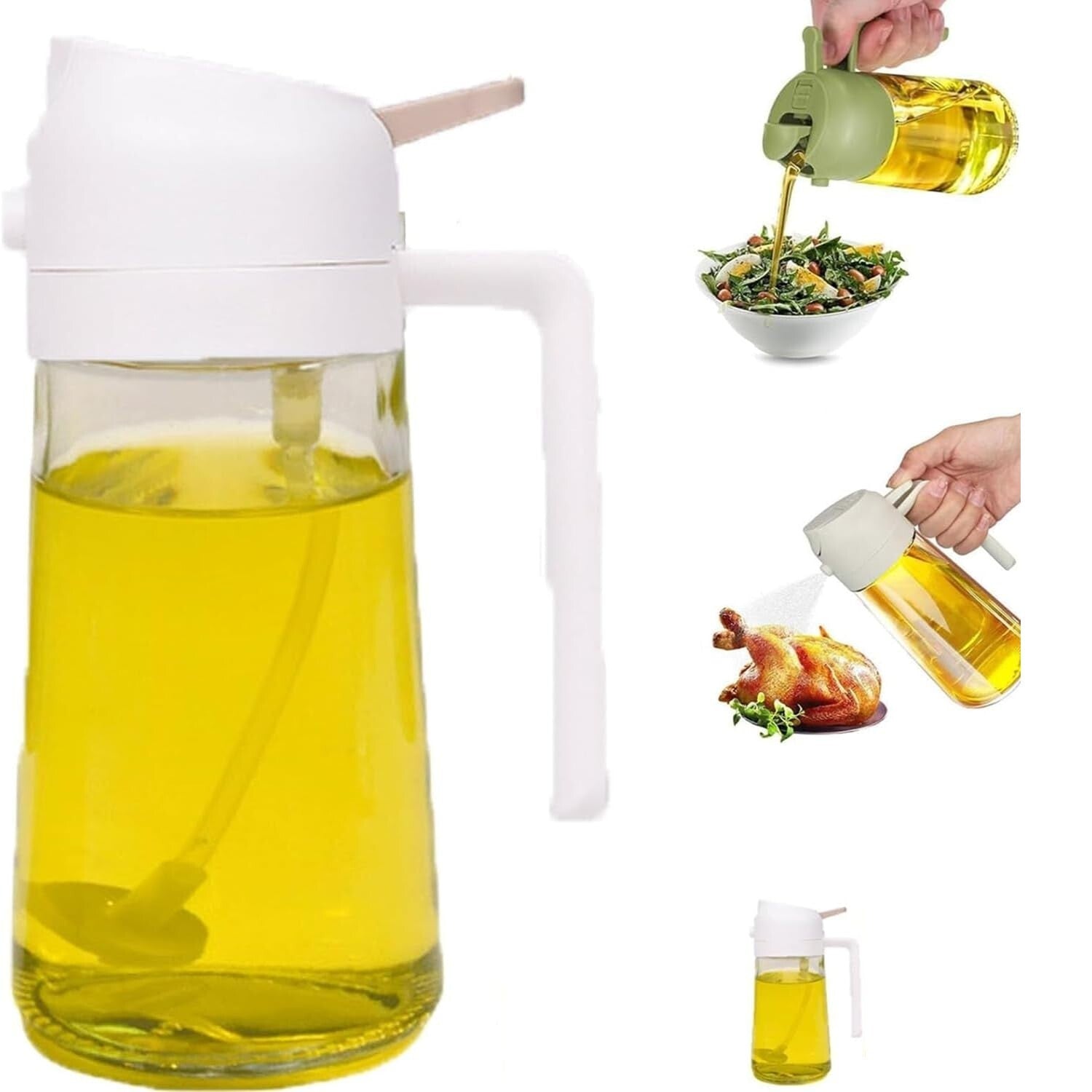 1 piece 2 In 1 Oil Dispenser and Sprayer Cooking Glass Olive Oil Bottle - White
