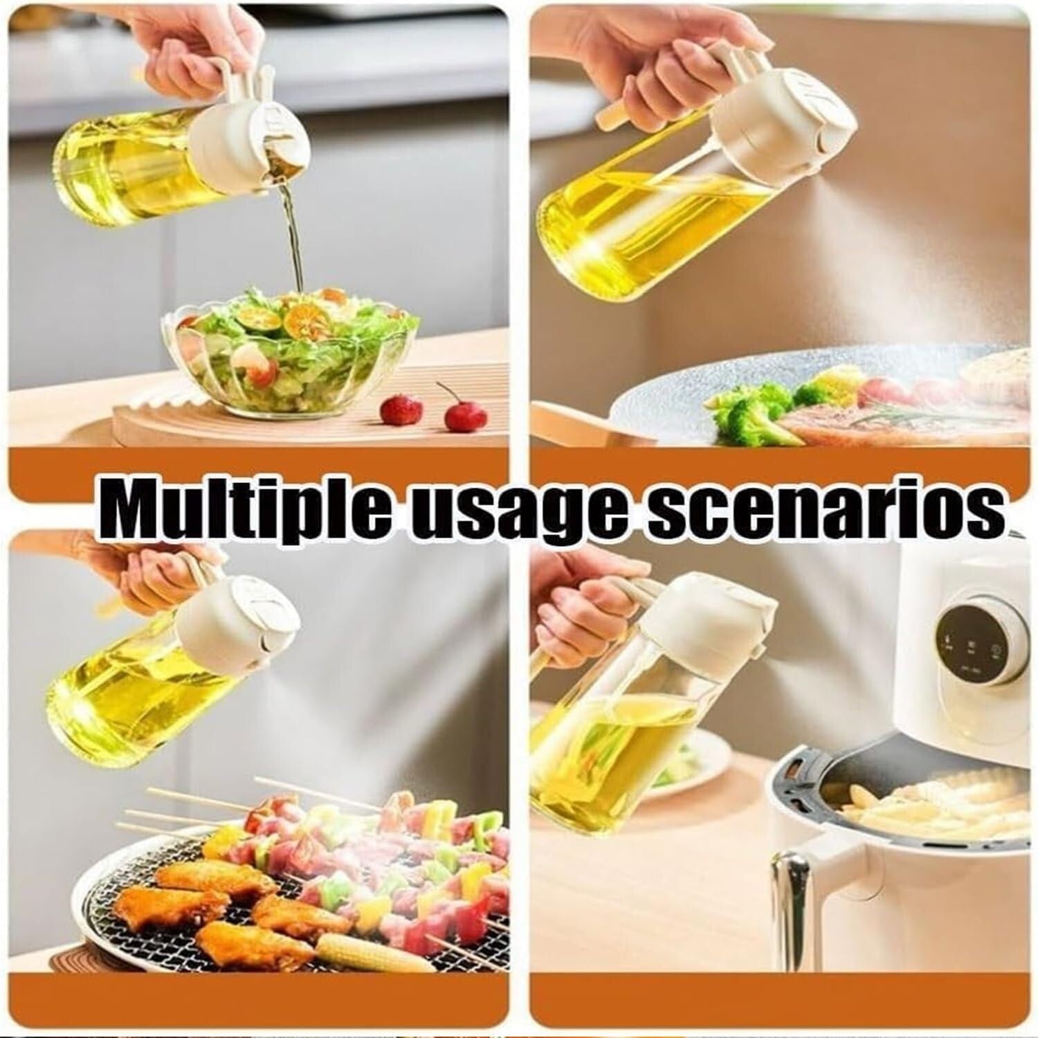 Our oil dispenser for kitchen features a dual-function design, fulfill various cooking needs with the convenience of both spray and pour features, It's a multi-purpose kitchen essential that,suitable for a wide range of food preparation processes such as dressing, griddle, roasting, grilling, baking.