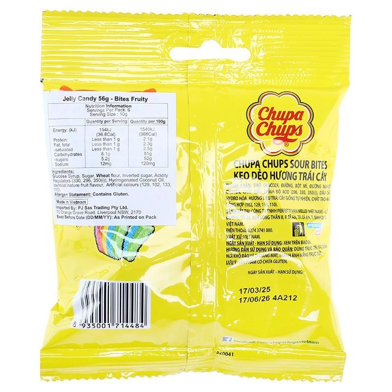 Package Includes: 1 bag Chupa Chups Sour Bites 56g