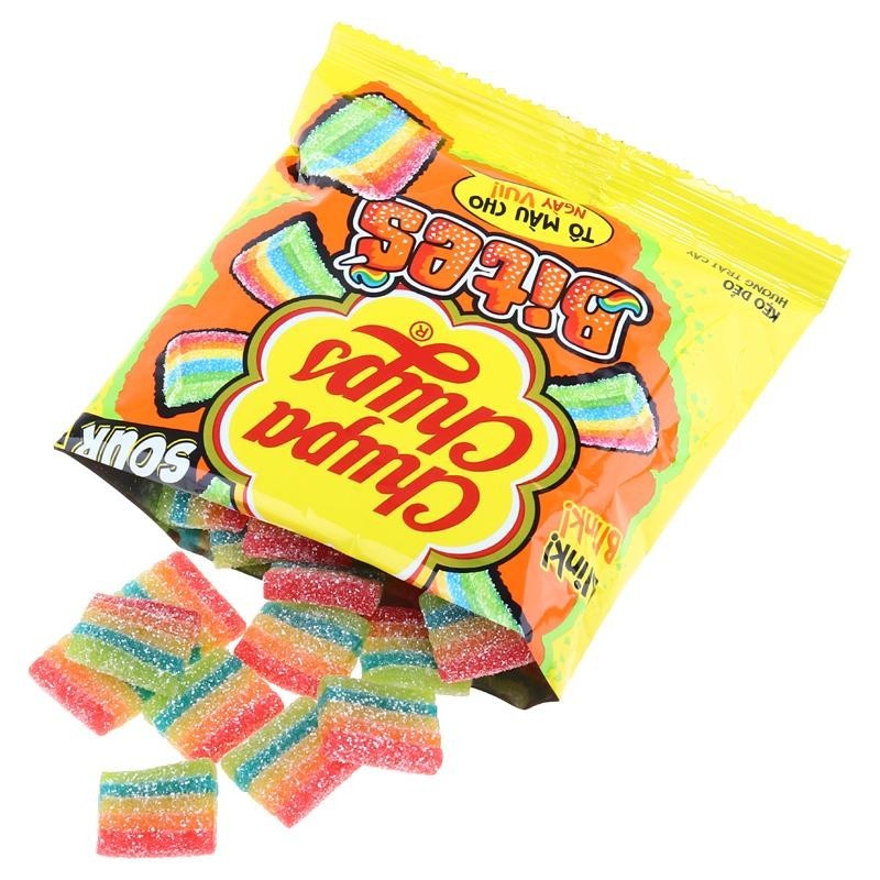 Chupa Chups forever fun bring to you Sour Bites! Colour your day with soft and chewy fruity rainbow bites that delivers a burst of sweet and sour and mixed fruit flavour.