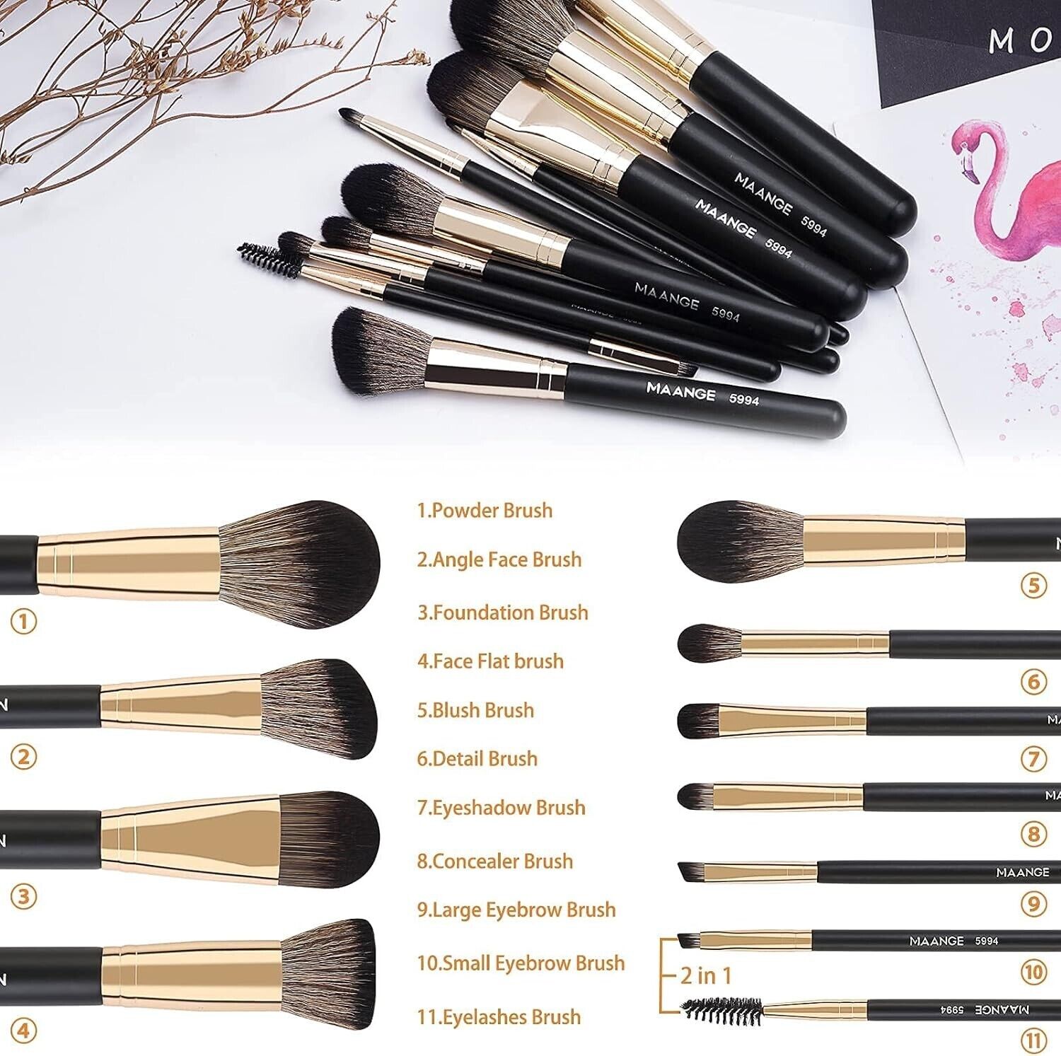 10 Pcs Makeup Brushes Travel Professional Makeup Brushes Set with Case Blackgold