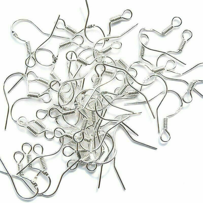 100Pcs Iron Earrings Hooks Ear Wire DIY Jewelry Findings Making Accessories Silver