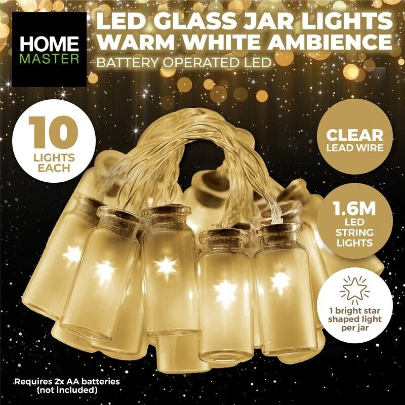 10pce Mini Jar Shaped Lights LED Home Master Battery Operated - Warm White