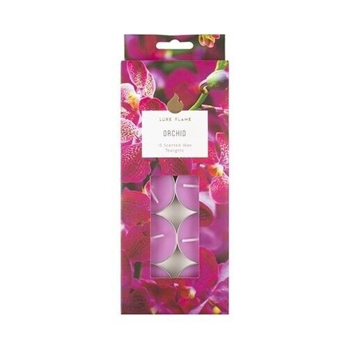 Package Includes: Box with 10pce Scented Tealight Candles Orchid
