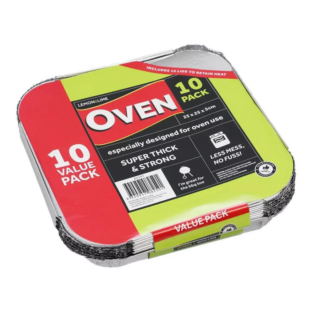 10PK Lemon & Lime Disposable BBQ Foil Container Food Tray Baking w/ Lid 25x25cm