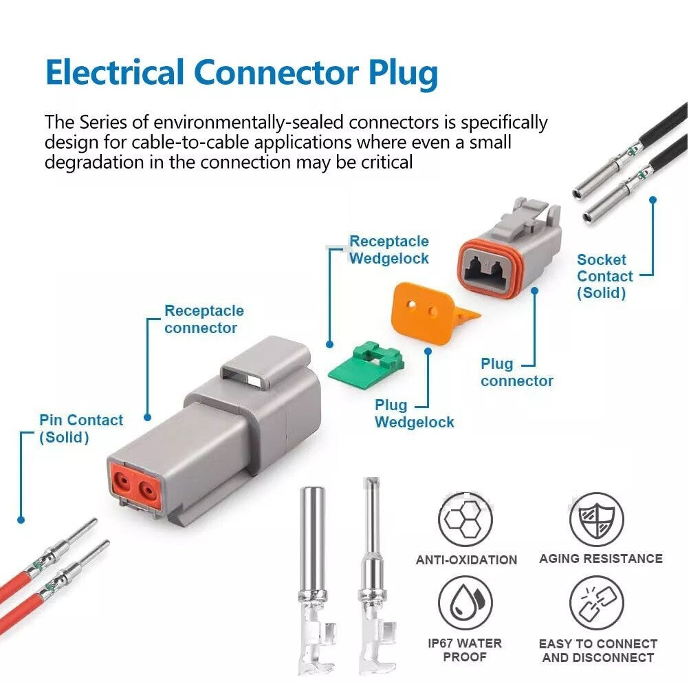 10Set Deutsch DT 2Way Pin Male/Female Kit Electrical Connector Plug Waterproof