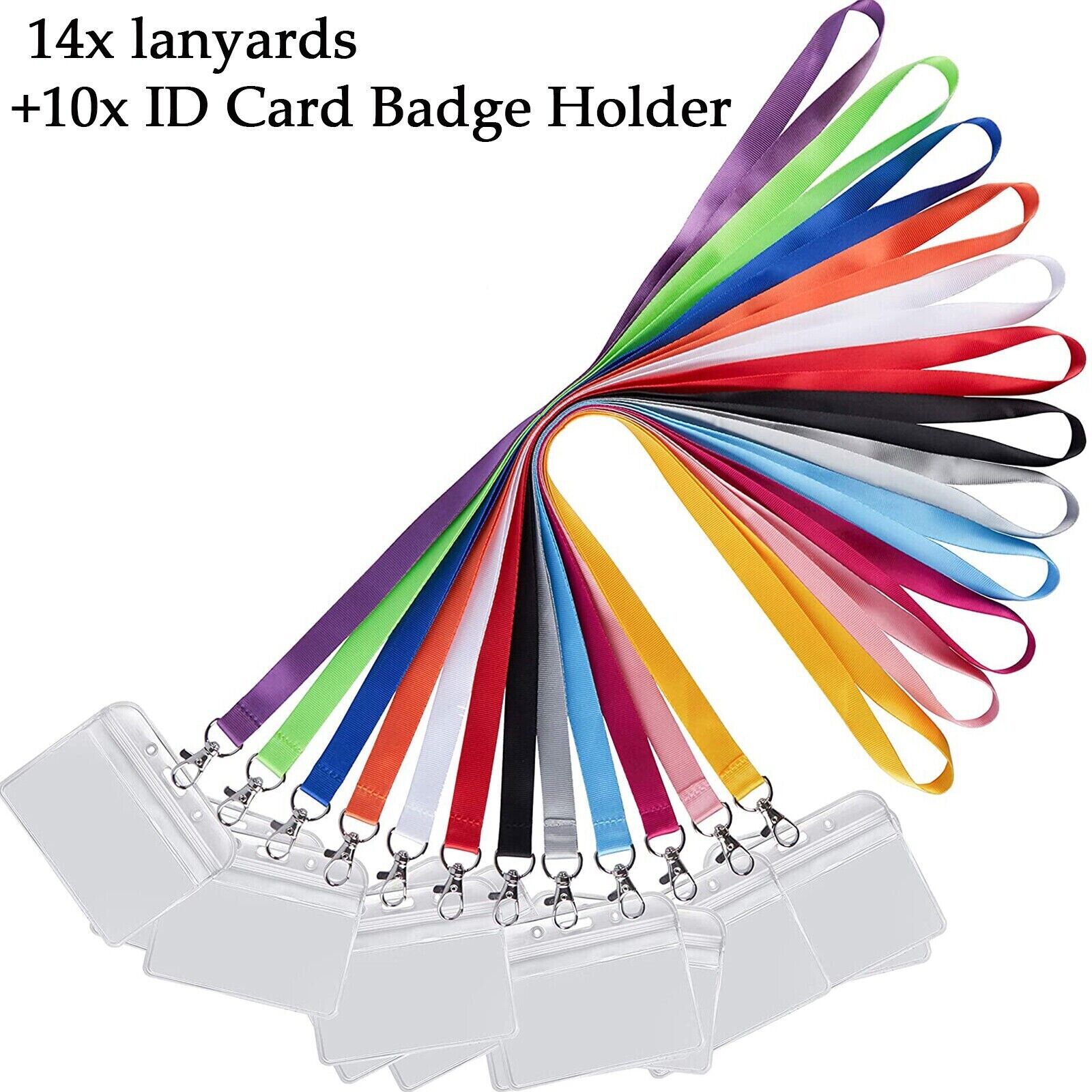 Package includes: 14x lanyards(Seven colors) + 10x ID Card Badge Holder