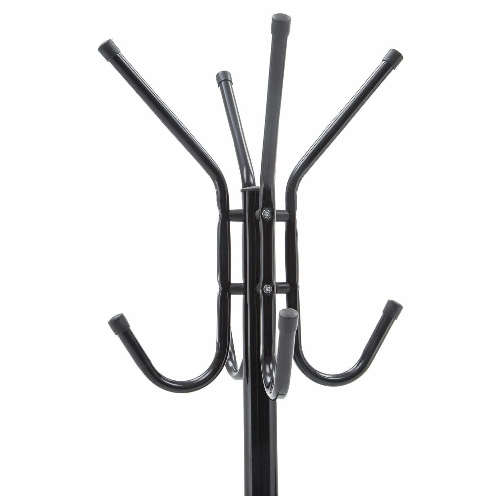12 Hook Cloth Hanger Stand Hat Clothes Rack Metal Tree Storage - Black