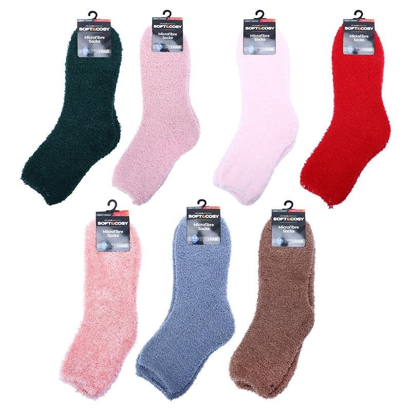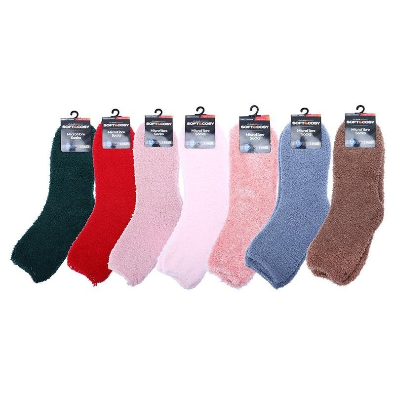 12 Pairs Socks Womens Microfibre Soft & Cosy Crew Cut Plain Assorted Colours