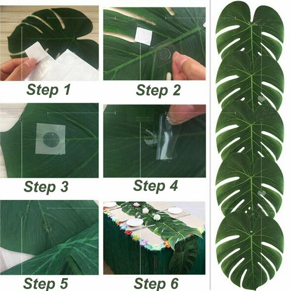 12x Large Tropical Hawaiian Artificial Palm Monstera Leaves Party Fake Luau Deco