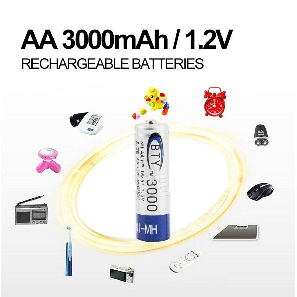 12x Rechargeable Battery AA 3000mAH NI-MH 1.2V Recharge Batteries AA