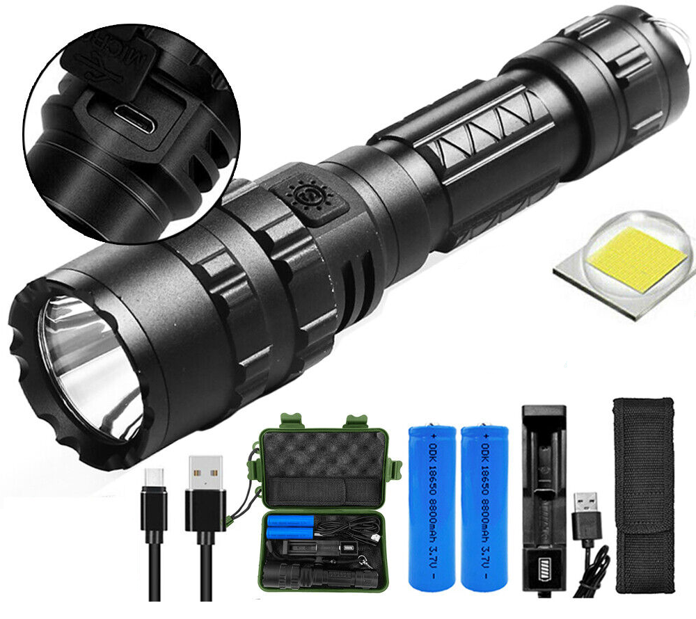 150000LM CREE L2 LED Tactical Flashlight USB Rechargeable Camping Hunting Torch