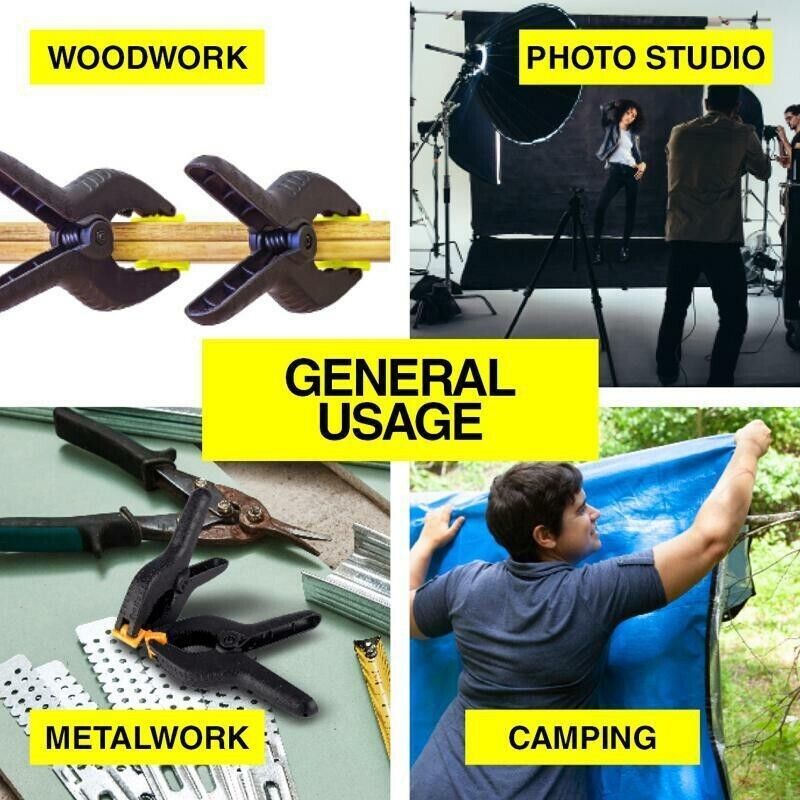 16X Spring Clamps Strong Grip Swiveling Jaws Smooth Edges Handy Clamp 9cm
