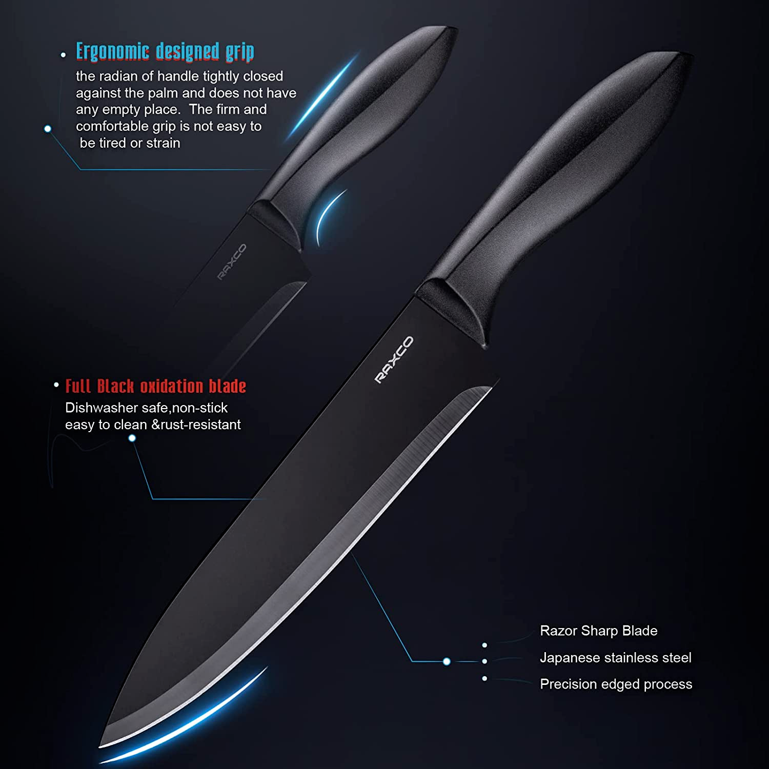 - Full black knives and Full black cooking utensils set,kitchen gadgets including cutting board,kitchen scissors,kitchen peeler,gadgets' holder,sharpner