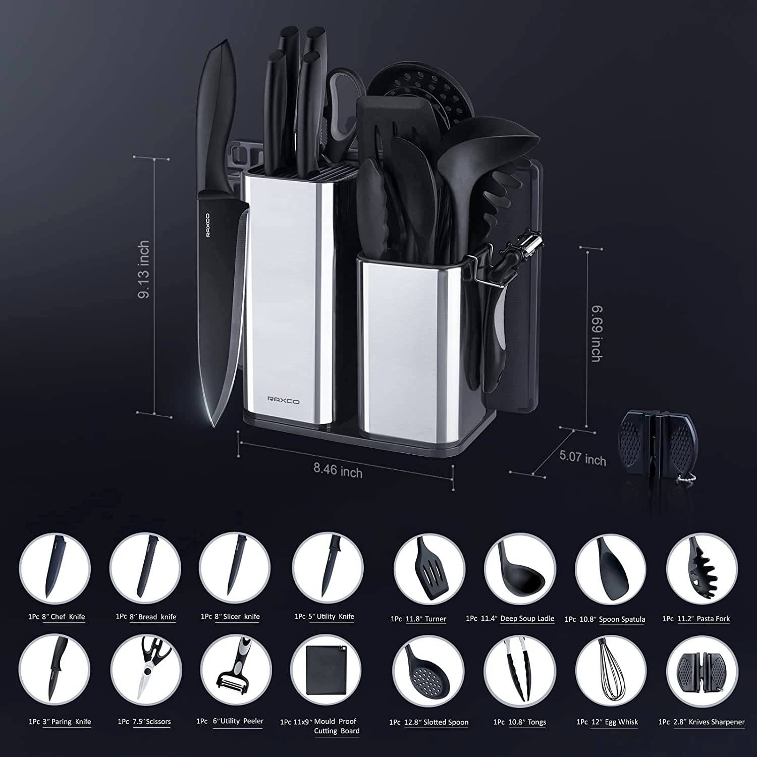18-in-1 kitchen set contains 5pcs knife set, silicone kitchen utensils set and kitchen gadgets accessories to meet your maximum demand be your kitchen assistant