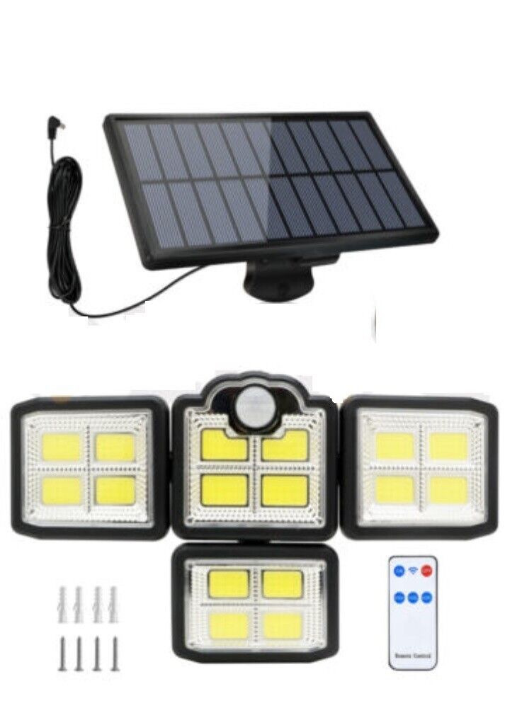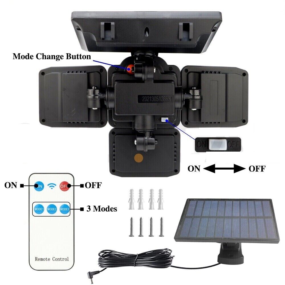 198 LED 4 Head Solar Motion Sensor Light Outdoor Garden Wall Security Flood Lamp