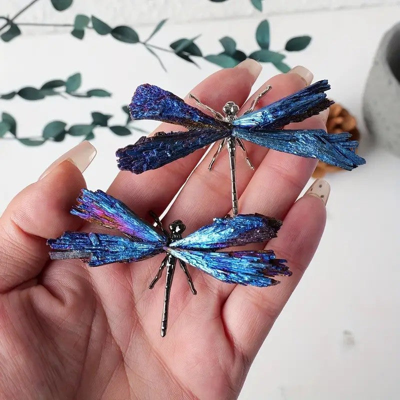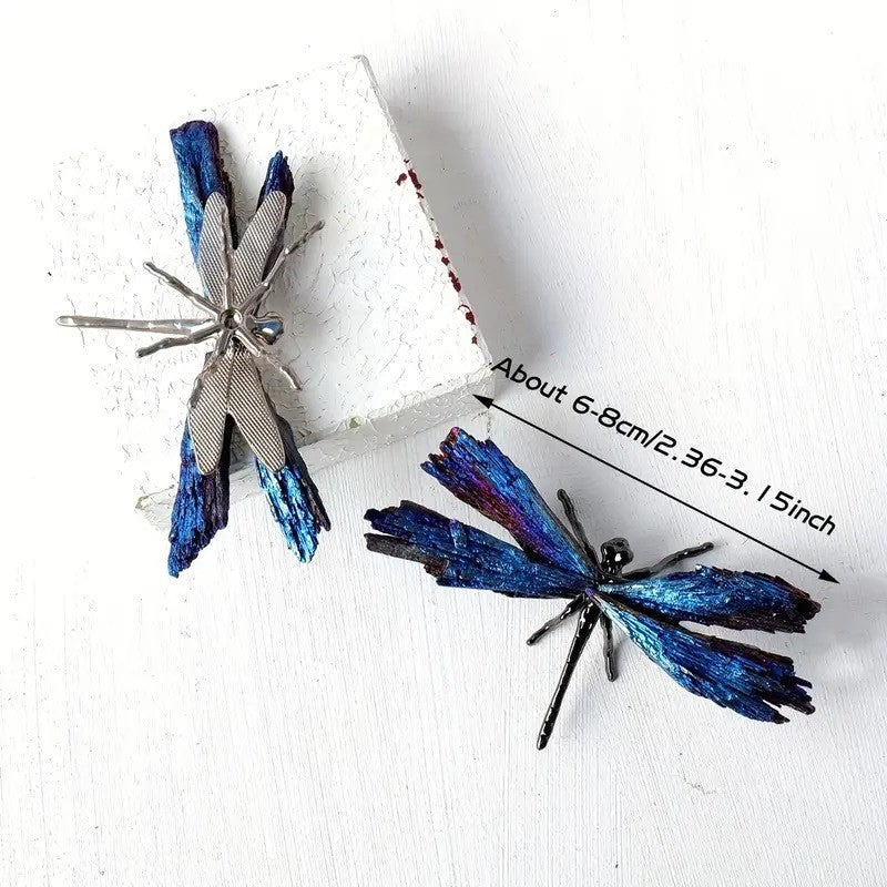 1pc APENGSHI Natural Blue Crystal Dragonfly Electroplated Metal & Stone Black