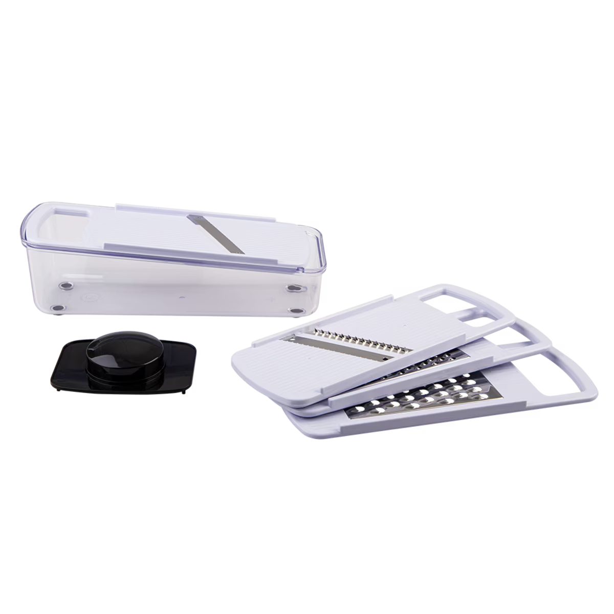The safety holder protects fingers and ensures a secure grip, reducing waste by allowing you to slice right down to the last bit. When you're done, all components conveniently nest within the included storage container, keeping your kitchen tidy and organised.