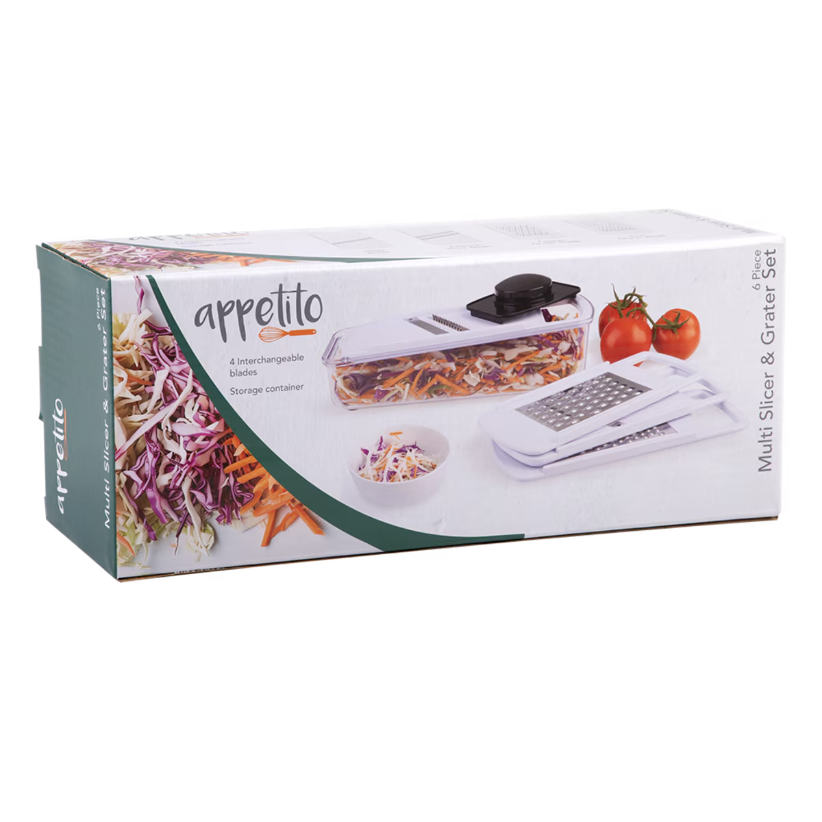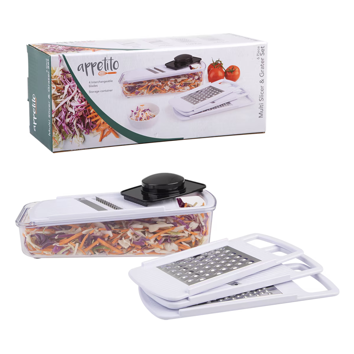 Package Includes: 1pc Appetito 6 Piece Multi Slicer & Grater Set