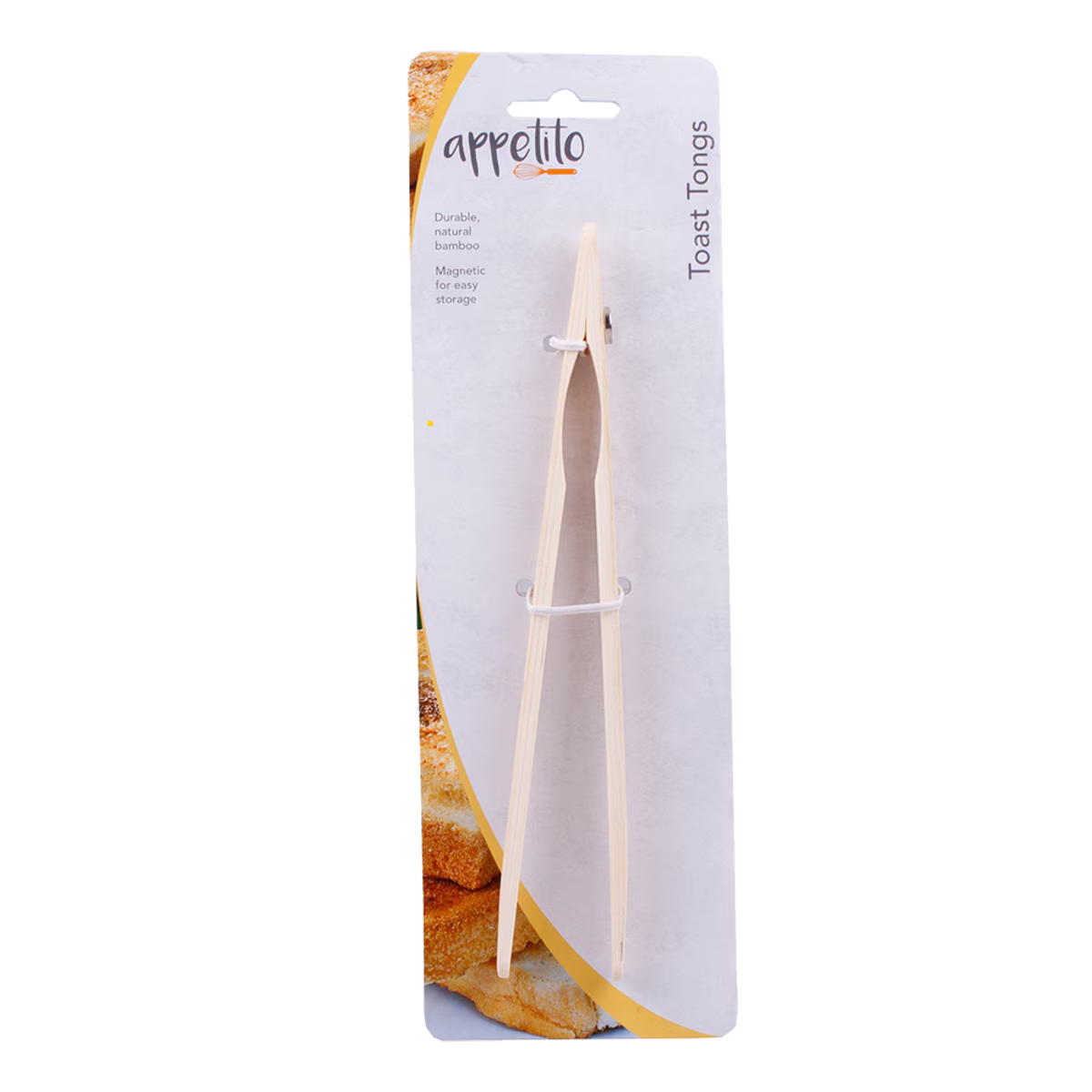 Made from extremely durable, natural bamboo, which will not absorb moisture, swell or split, these magnetic Appetito Toast Tongs are a great way to remove hot toast, muffins, crumpets, bagels or broken bread from your toaster or sandwich grill.