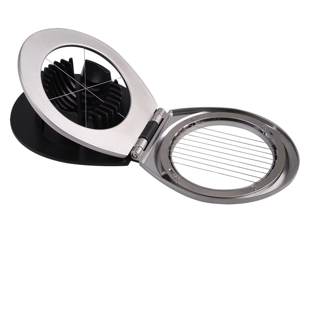 Suitable for most egg sizes, this multipurpose gadget, made from a robust zinc alloy construction, cuts and slices hard boiled eggs. To use, firstly remove the shell from the hard-boiled egg, once deshelled, lift the preferred blade type and place the egg in the centre cavity. Press the blade down, and the fine cutting wire will perfectly slice or wedge the egg, ready to enjoy.