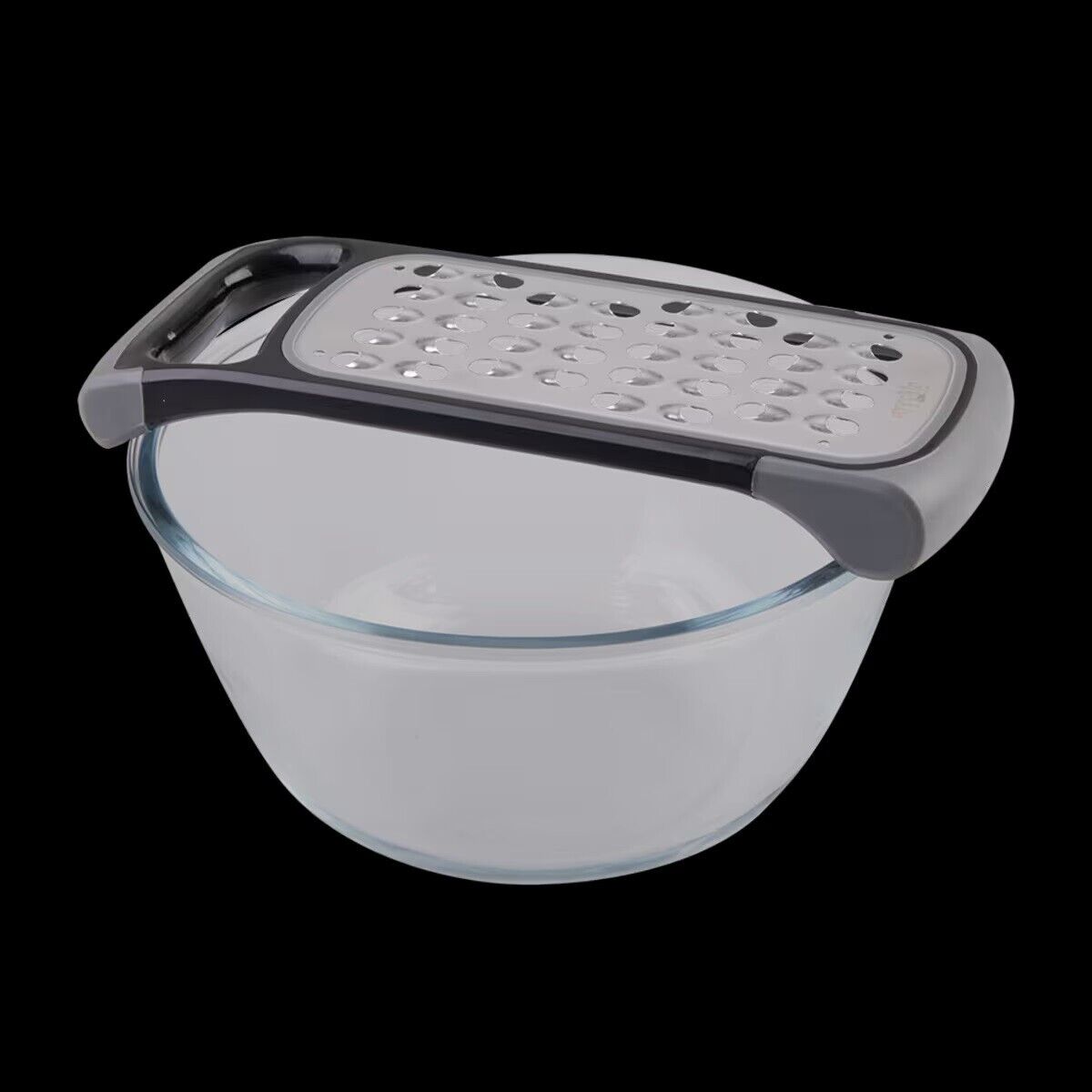 Grate cheese, vegetables, and much more directly in a bowl with the Appetito Stainless Steel Bowl Grater. Utilising sharp 2-way stainless steel coarse grating blades, this bowl grater fits perfectly on different sized bowls, up to 24cm dia., eliminating waste, and giving you a mess-free grating solution.