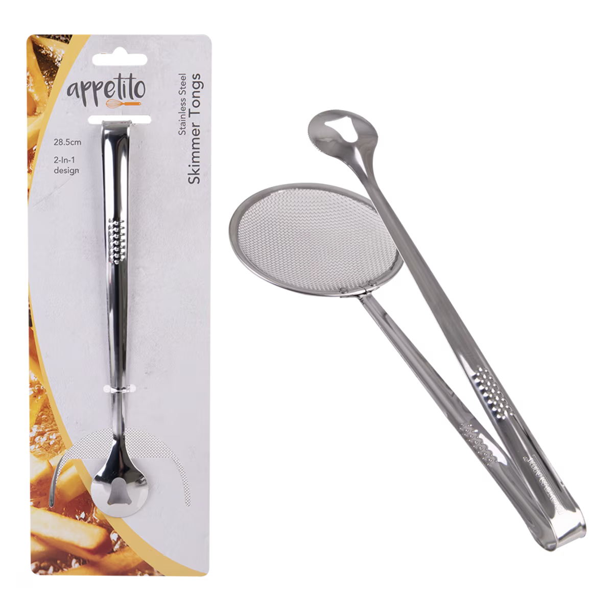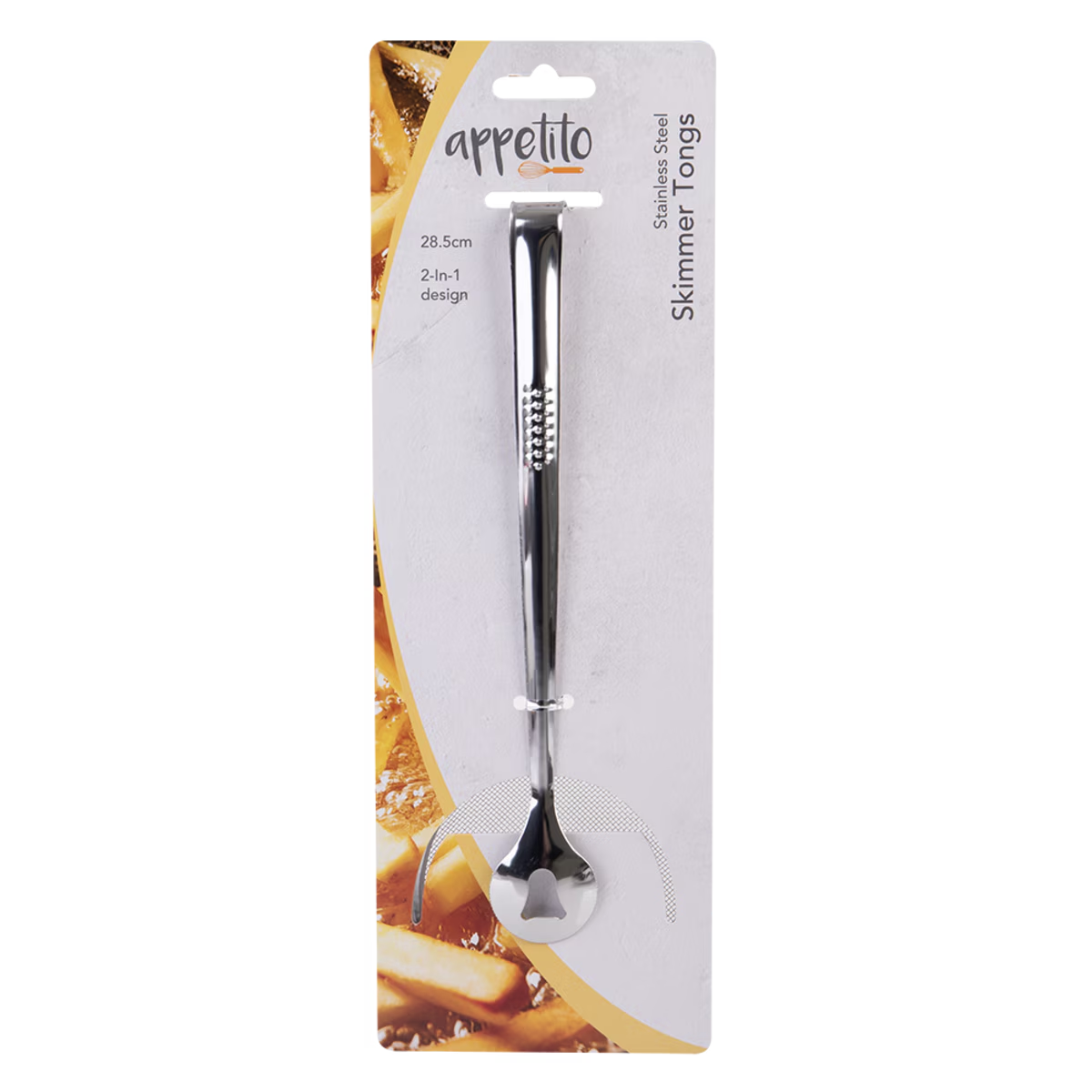 Package Includes - 1x Appetito Stainless Steel Skimmer Tongs 28.5cm