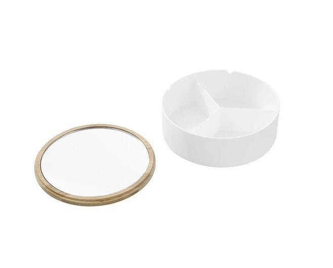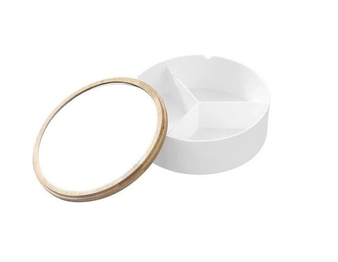Organise your bathroom in style with our Boxsweden Bano 3 Section Round Organiser Box With MIrror. Our design is BPA free, durable and easy to clean. Plus, the bamboo lid is also a mirror that you can stand up from the inside of the box. Perfect addition to your bathroom alongside the rest of the Bano range!