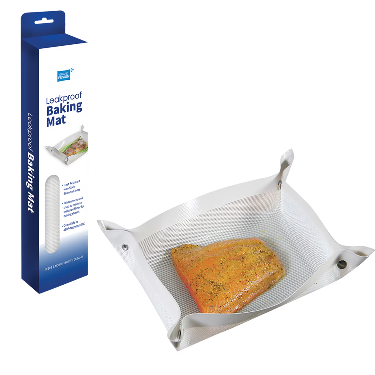 Package includes 1x Grand Fusion Silicone Leakproof Baking Mat