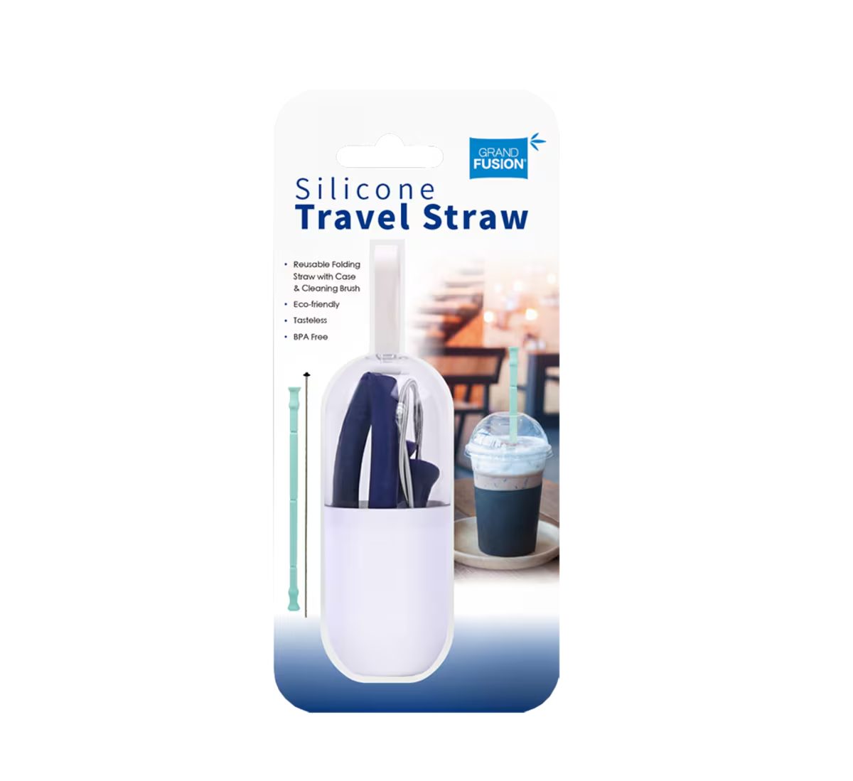 Package includes 1x Grand Fusion Silicone Travel Straw - Assorted Colour
