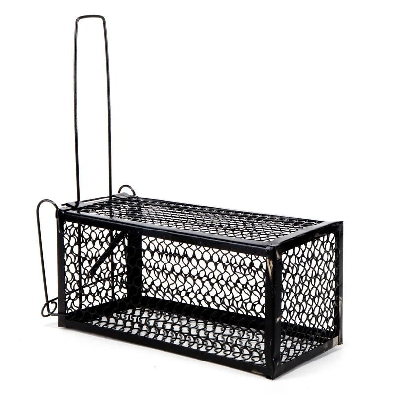 Effectively and humanely capture rodents with this durable Metal Rat Trap Cage. Made from strong wire mesh and finished in sleek black, this reusable trap is designed for easy setup and secure containment.