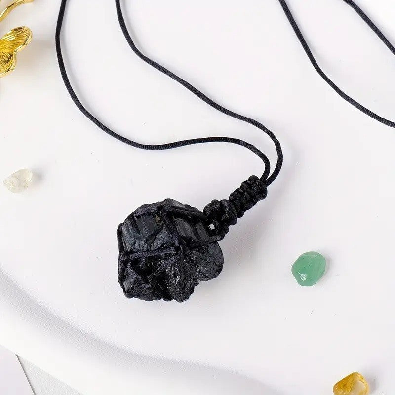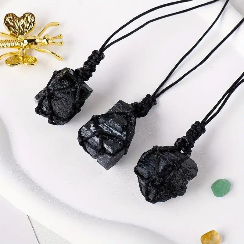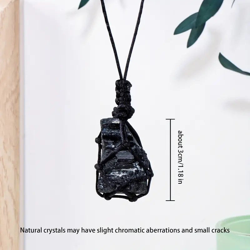 1pc Natural Crystal Black Raw Stone Unpolished Pendant Necklace Protection
