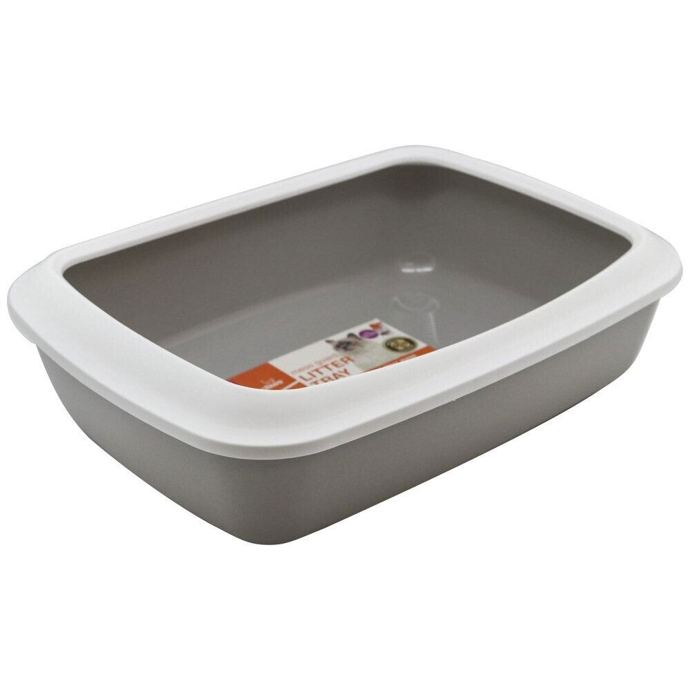 1pc Paws & Claws Pets Cat Kitten Litter Tray w/ Mess Guard White Grey 42x31x12cm