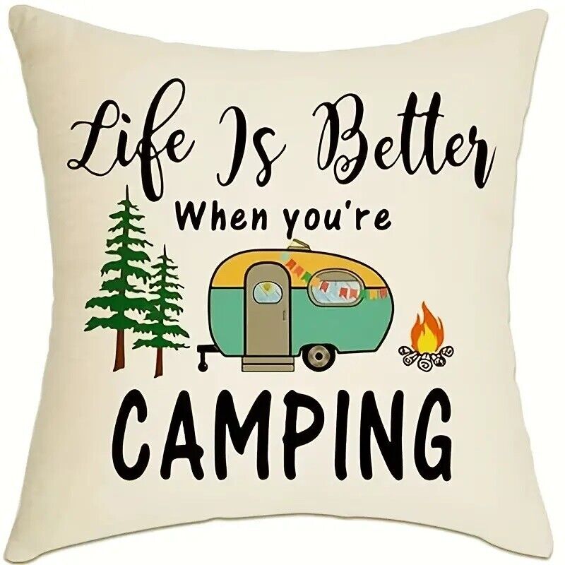 1pc Travel Trailer Square Linen Cushion Cover Camping Home Decor45x45cm