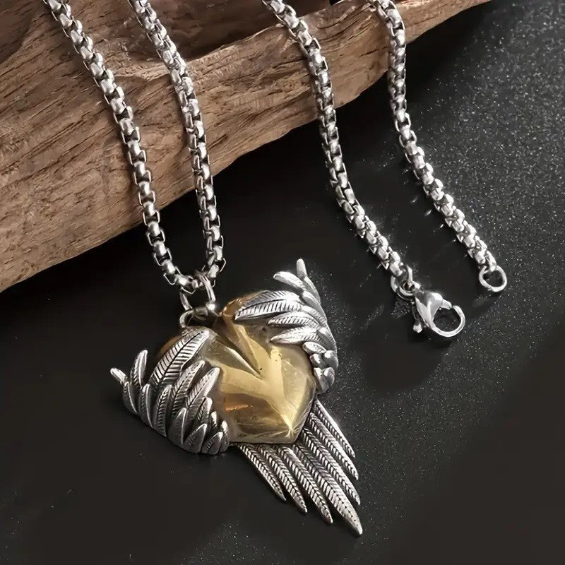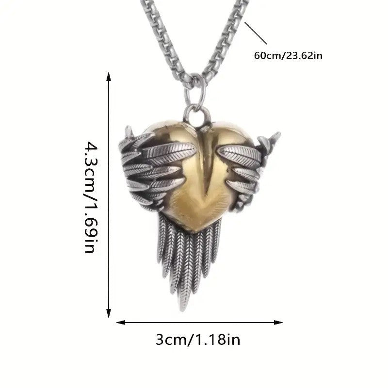 Add a touch of timeless charm with this vintage-inspired angel wings heart pendant necklace. Crafted from durable golden alloy, the pendant features intricate wing detailing embracing a heart, symbolizing love, protection, and connection. A perfect accessory for both men and women, this necklace makes a meaningful gift for couples or anyone who appreciates retro-style jewelry.