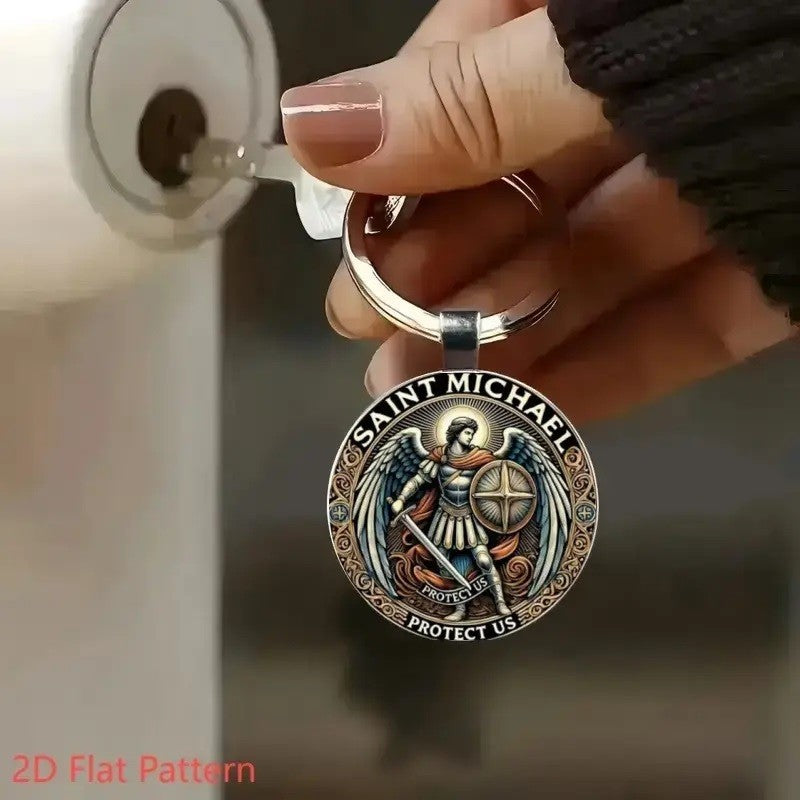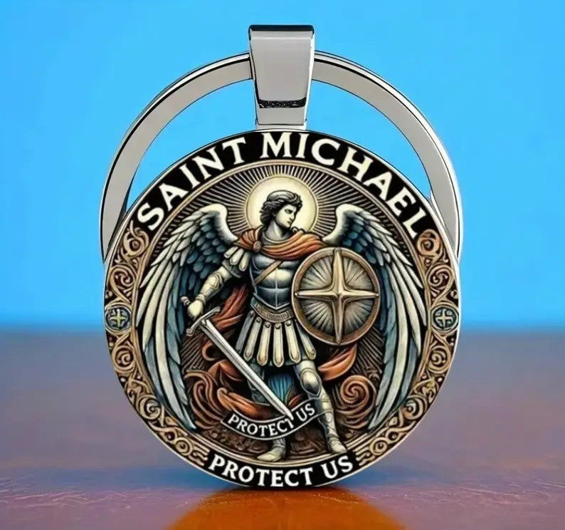1pce 2D Defenders Saint Michael Zinc Alloy Keychain Keyring Gift Protect Us
