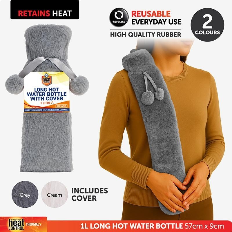 Stay warm and cosy with this long hot water bottle, perfect for providing gentle heat and comfort on cold nights. The slim design makes it ideal for wrapping around your body, keeping you snug while you relax, rest, or sleep.