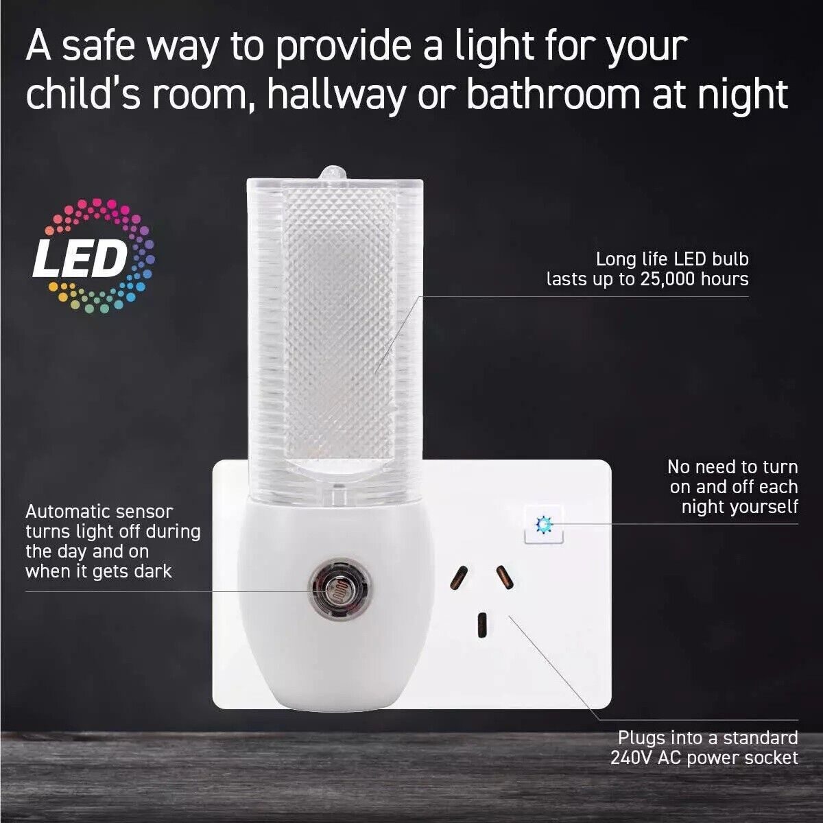 SAS Electrical® Perfect in providing light for children's bedrooms, dark entrances, hallways, or stairwells, these night lights are fitted with an automatic light sensor providing you with the light you need.