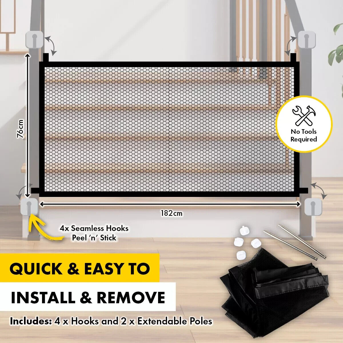 Package Includes: 1x Dog Guard Gate Mesh Black 182cm x 76cm