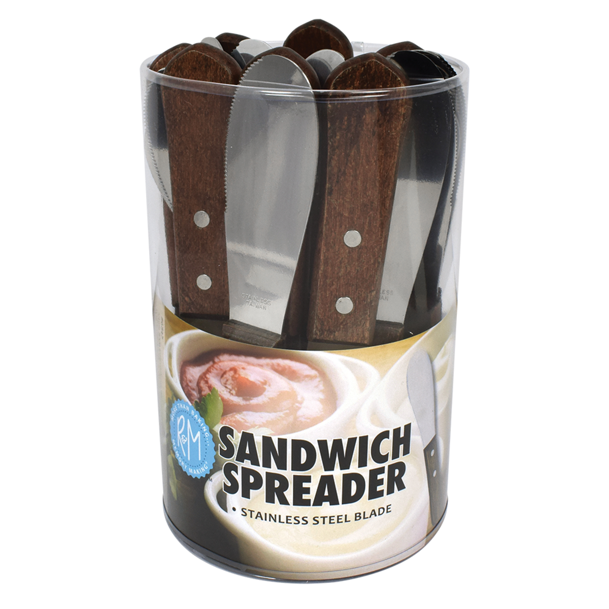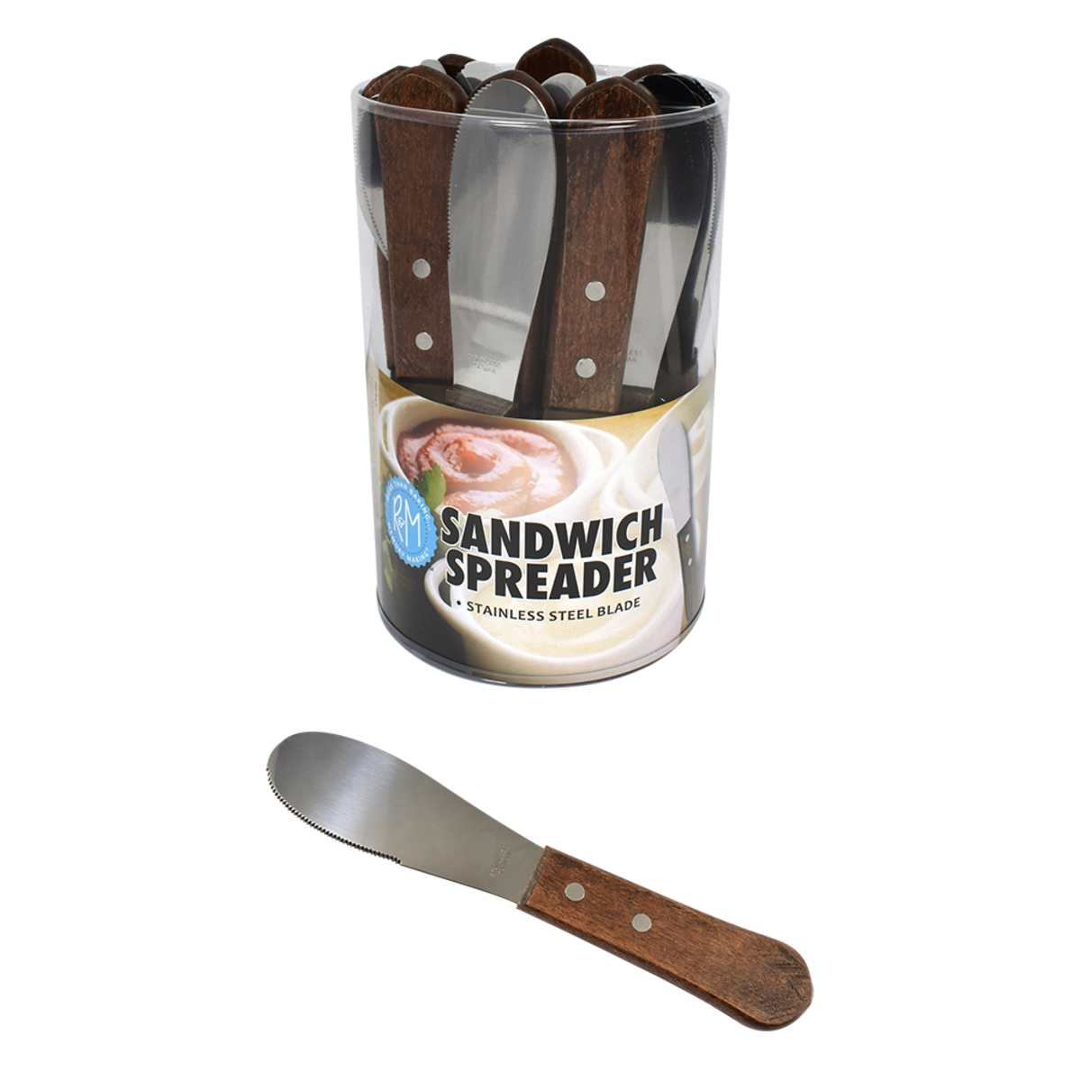 Package Includes: 1 piece R&M Stainless Steel Sandwich Spreader w/ Woodle Handle