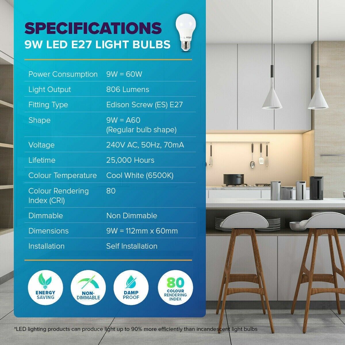 1PK Bulb 9W LED Cool White Screw E27 Energy Saving Lasting Light Globe
