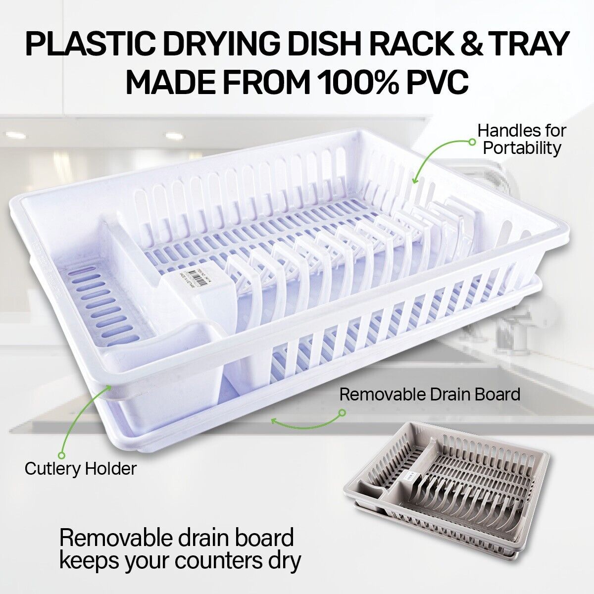 1PK Dish & Cutlery Rack With Draining Tray Sturdy Compartments Kitchen White