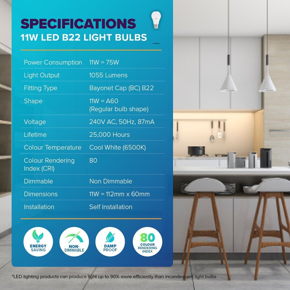1PK LED Light Bulb Cool White Bayonet B22 Energy Saving 11W Light Globe