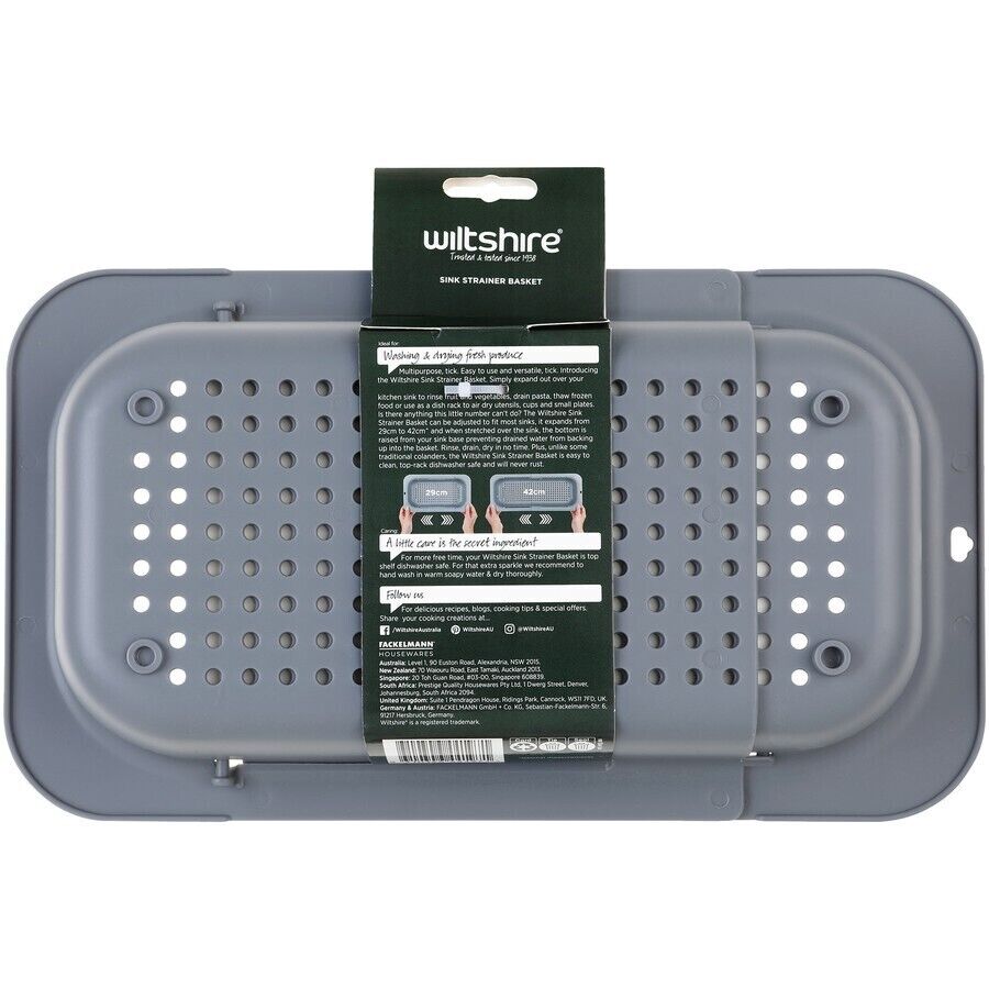The Wiltshire Expandable Multi-Purpose Sink Strainer Basket is the perfect solution for keeping your kitchen sink clean and clog-free. This versatile basket expands to fit most sink sizes and can be used for straining fruits, vegetables, or collecting food scraps for easy disposal. The durable construction ensures long-lasting use, while the compact design allows for easy storage when not in use. Keep your sink organized and efficient with this handy strainer basket.Wiltshire is an iconic Australian kitchenware brand here to help create quick, delicious meals that bring your family and friends together on the days that matter most – every day. Our products have been synonymous with quality, reliability and value for money for over 80 years and make us one of Australia’s most recognised kitchenware brands.
