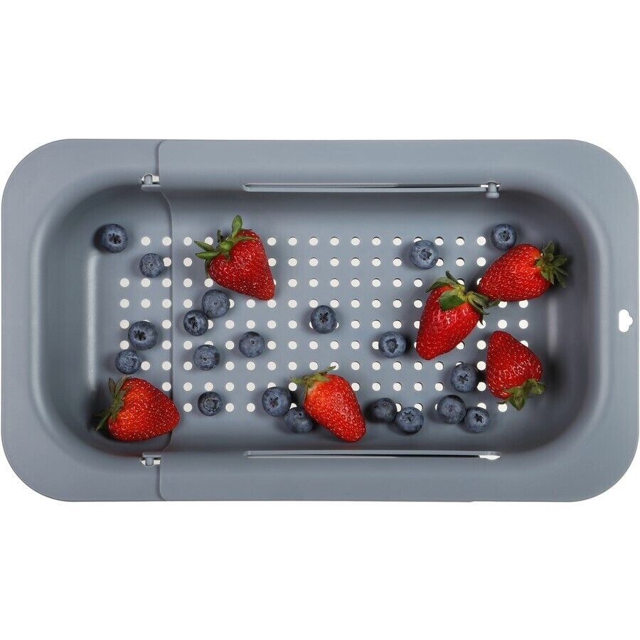 Multipurpose, tick. Easy to use and versatile, tick. Introducing the Wiltshire Sink Strainer Basket. Simply expand out over your kitchen sink to rinse fruit and vegetables, drain pasta, thaw frozen food or use as a dish rack to air dry utensils, cups and small plates. Is there anything this little number can’t do? It's also comfortable to hold in hand and can be used on your counter as a basket. No matter how you use it, we think you'll love its versatility. The Wiltshire Sink Strainer Basket can be adjusted to fit most sinks, it expands from 29cm to 42cm and when stretched over the sink, the bottom is raised from your sink base preventing drained water from backing up into the basket. Rinse, drain, dry in no time. The evenly spaced holes on the bottom of the basket helps prevent food from falling down the drain and increase airflow when drying small utensils and cups. The holes are larger than most traditional colanders, so this basket is not ideal for rice, quinoa, or small grains.