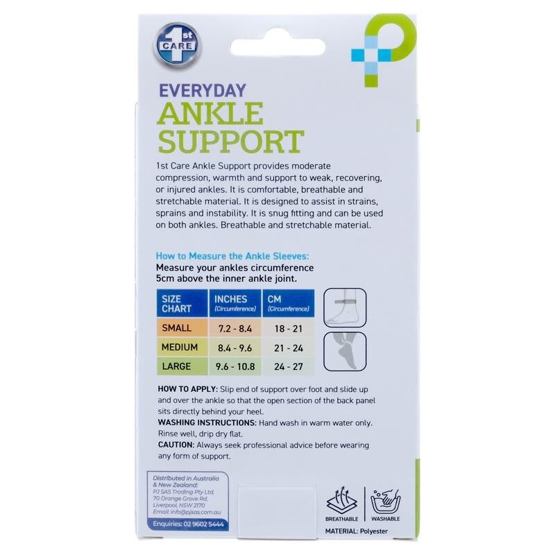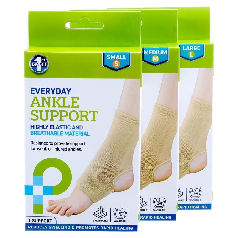 1ST CARE Ankle Support provides moderate compression, warmth, and support to weak, recovering, or injured ankles.