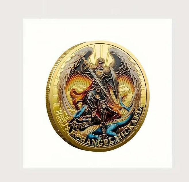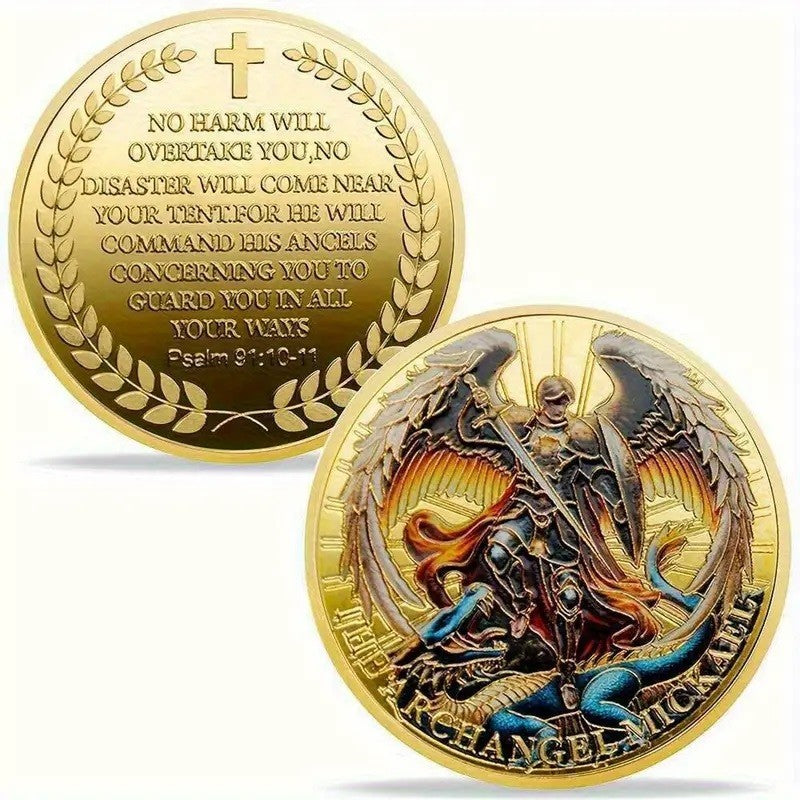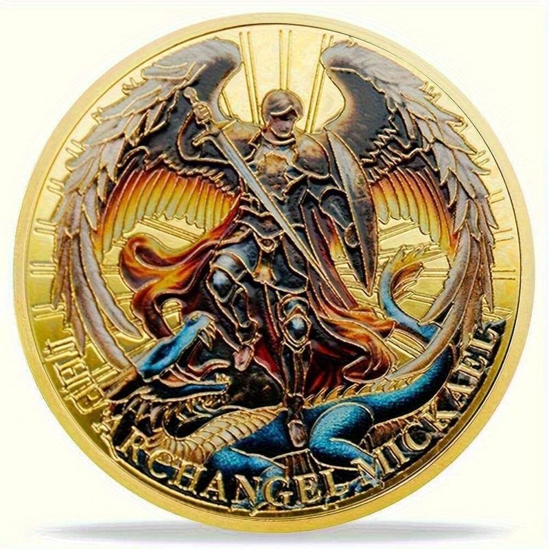 1x Archangel Michael Lucky Coin Golden Colorful Guardian Angel Inspirational