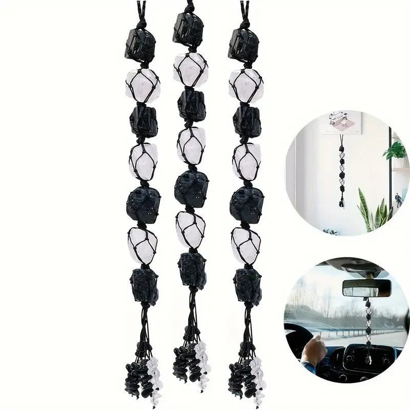 Package Includes: 1pc APENGSHI Classic Style Hand-Woven Crystal & Raw Stone Wall Hanging – Black & White