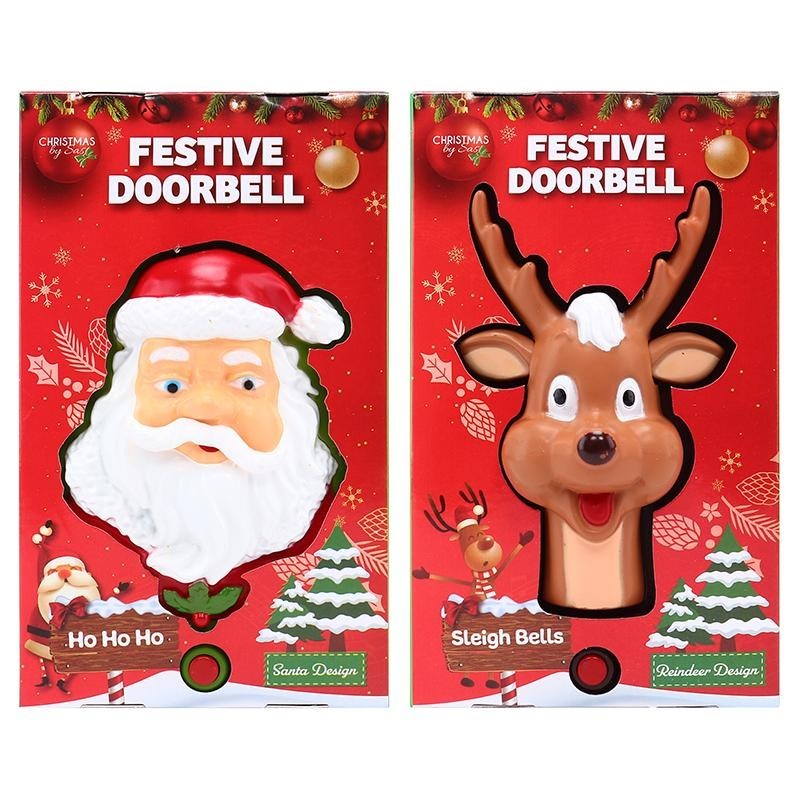 Add a jolly touch to your home this festive season with this Battery Operated Christmas Door Bell! Featuring a cheerful Santa design, it plays delightful holiday sounds when pressed—perfect for greeting guests with Christmas cheer.